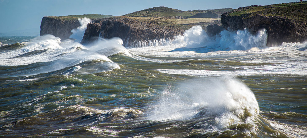 Escuchar el mar respirar, tronar, vociferar… lo vemos como salta y explota… por encima de nuestras cabezas se forma una nube viva de gotas ínfimas que nos rocía, a esto lo acompaña un ronquido o “bufido” que resulta sobrecogedor e impactante y un ligero temblor de la roca maciza de los acantilados bajo nuestros pies.