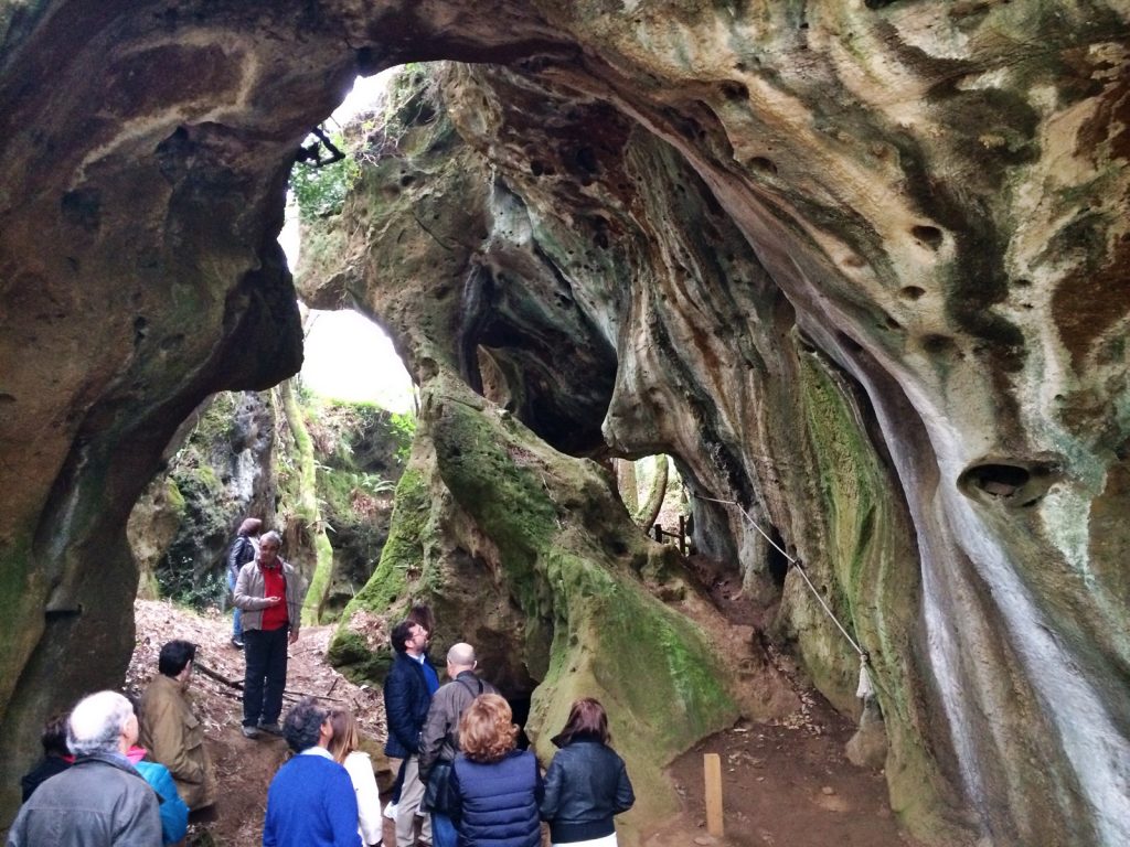 Quien piense encontrar estalactitas, estalagmitas o pinturas rupestres va mal encaminado. En esta peculiar cueva lo que reina es la vegetación y sobre los roquedos crecen bosques de robles, laureles, madroños, castaños, acebos, helechos… Carteles explicativos nos ayudarán a reconocer cada uno de los árboles.