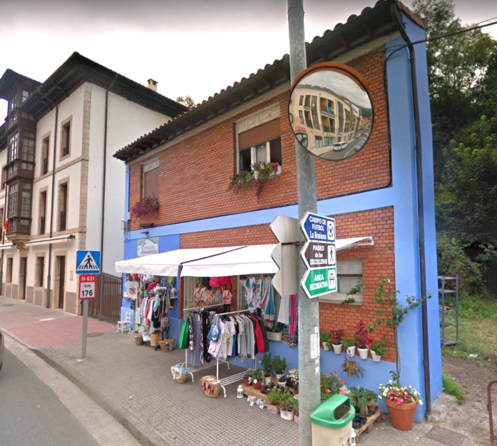 Aquí vivirá gente muy esbelta?… o podría decirse que «es solo fachada»?. En realidad se trata de uno de sus laterales, no llega al metro (apenas más de lo que mide su canalón) y que el espacio va en aumento, siendo más amplia en su otro lateral, con 5 metros de profundidad. Es una casita de muñecas, con una típica fachada al estilo urbano de los 70, muy característica de los pueblos Asturianos en la época…. ¿Cuál será la historia que se esconde detrás?