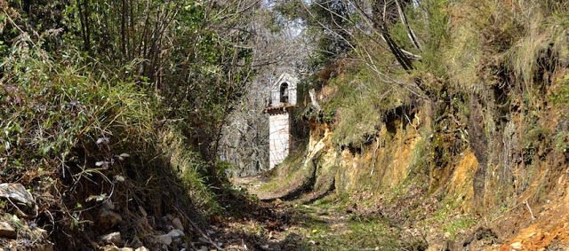 La senda cruza la carretera LL-2, en torno al kilómetro nueve y medio, y discurre por la vertiente norte de La Cuesta de Cué, justo por debajo del campo de golf. En torno al kilómetro trece se alcanza La Capilla del Cristo.