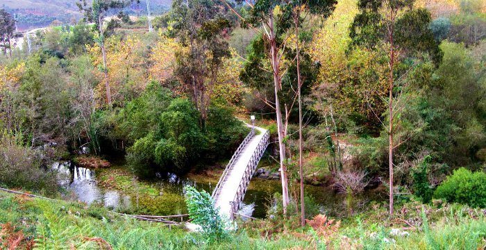El río Purón se cruza por una pasarela singular de madera laminada, luego se asciende en ligera y continuada pendiente, hasta el núcleo de Andrín, en el kilómetro ocho y medio.